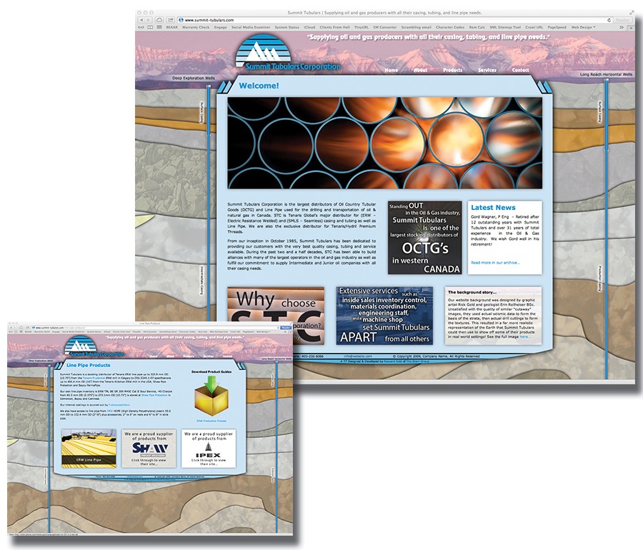 This was a situation where we may have put as much work into the background as the rest of the site! We wanted to use a textbook-like earth cut away, but decided to amp it up! We took real seismic data, worked with a geologist to interpret the data, gathered photos of actual drill cuttings and made a realistic earth cut away to show their down-hold products!