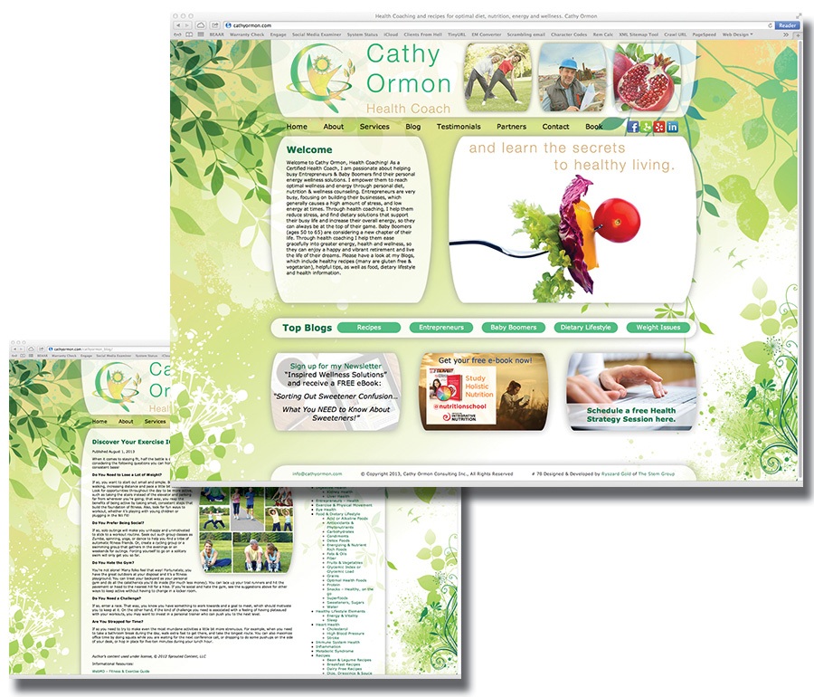 For such an organic person, we produced an incredible organic website look & feel. The leafy background communicates her healthy message, and the curves give an organic feel.