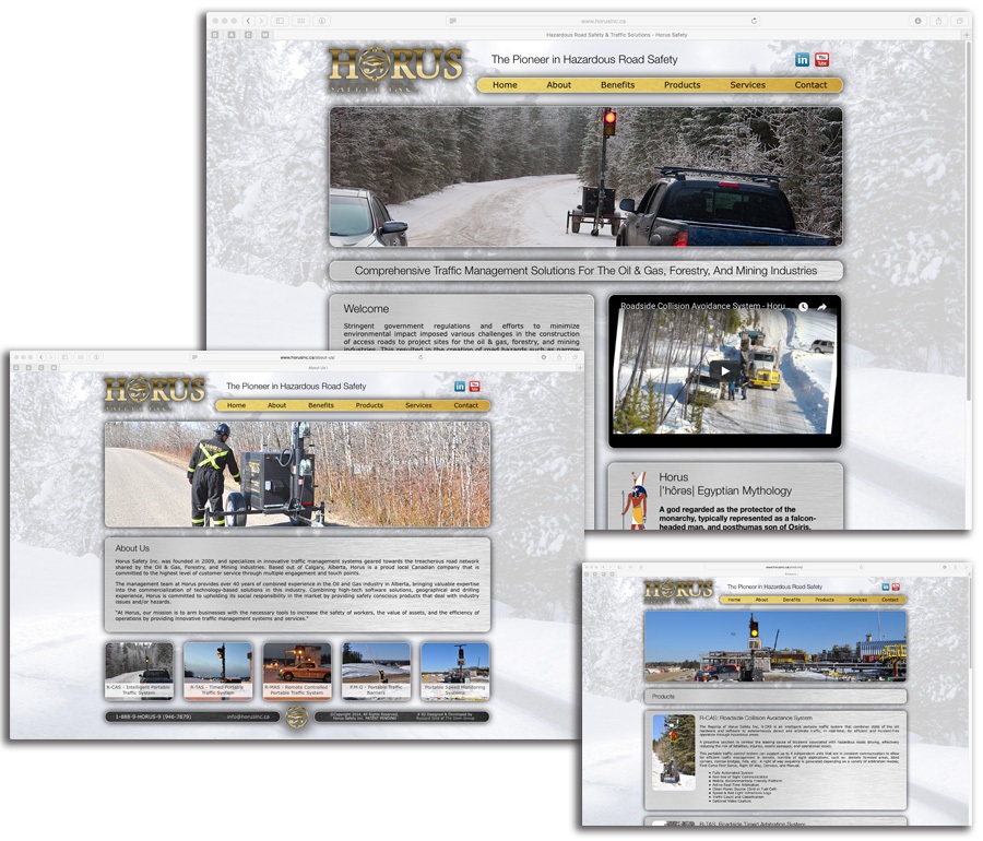The second design we did for Horus Safety, this one showcased the video work we did for them. Using brushed metal as background elements, this was a beautiful second version!
